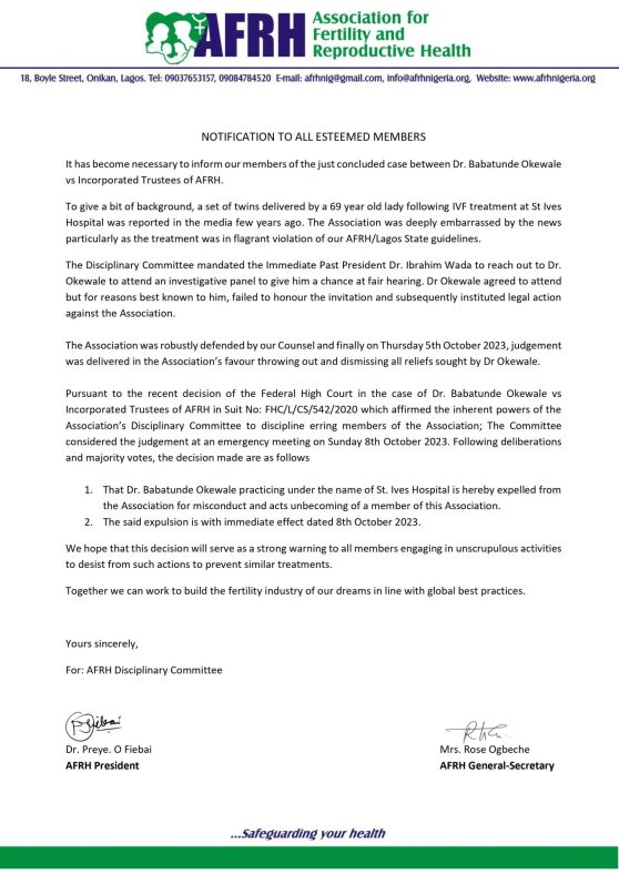 Membership of the association is currently open to all that have interest in fertility services. The Membership fees for foreign delegates are quoted in Naira.